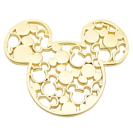 Mickey puts his heads together to create this elegant Gold Filigree Icon Mickey Mouse Pin. Outline and solid Mickey icons mesh together to form a large icon that will add a golden touch to your Disney pin collection.