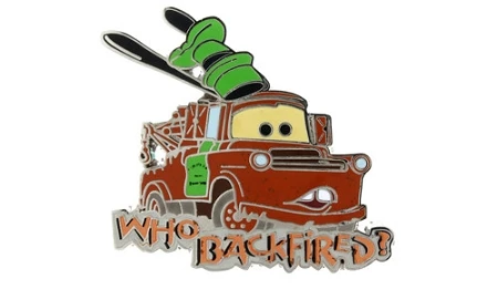 Tow Mater is wondering “Who Backfired” in this Open edition Mater pin.