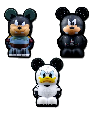 You don’t know the power of the dark side! This collection of Vinylmation” pins features Disney’s Pete as Bobba Fett, Donald Duck as a Stormtrooper and Goofy as Darth Vader. The pins are sculpted to give a three-dimensional look.